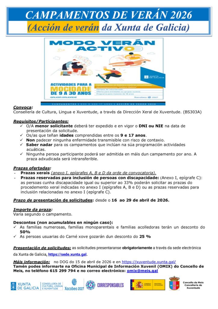 M谩is informaci贸n na Oficina Municipal de Informaci贸n Xuvenil (OMIX) do Concello de Meis, no tel茅fono 615 299 794 e no correo electr贸nico: omix@meis.gal